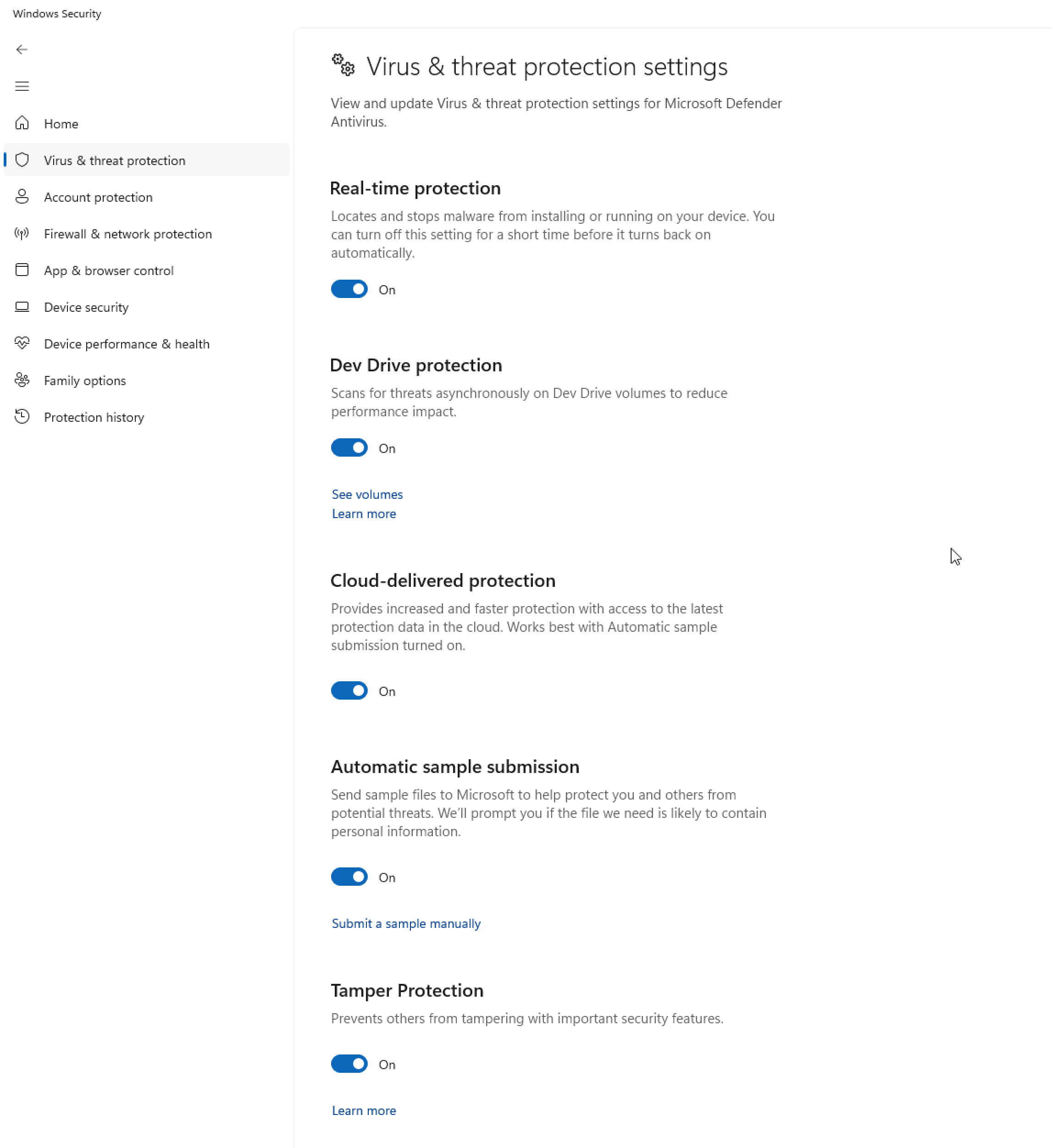 - Make sure Tamper Protection is enabled to prevent unauthorized changes to security settings.